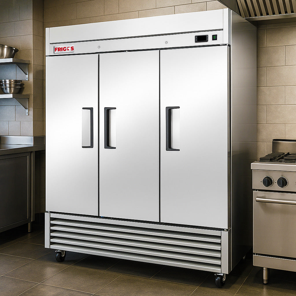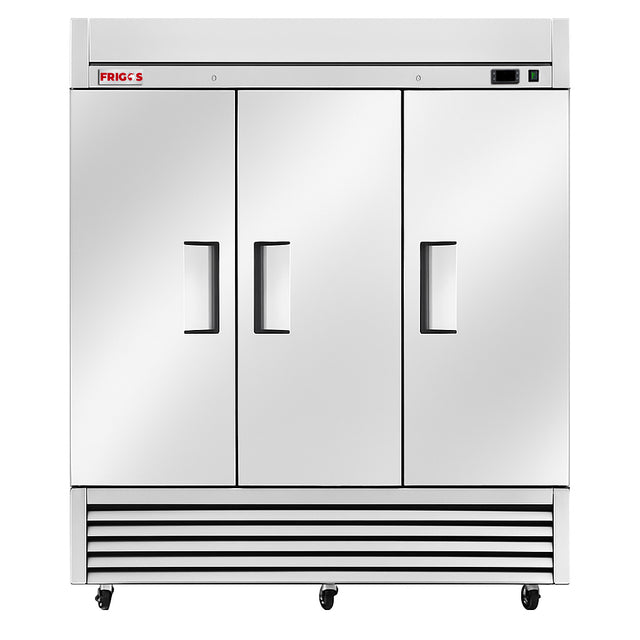 Upgrade your commercial kitchen with the Frigos Value Series FGV-RF-3D Triple Solid Door Reach-In Refrigerator, offering 72 Cu. Ft. of spacious, organized storage for your goods.