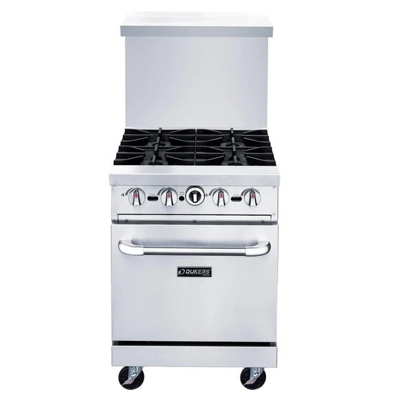 Dukers DCR24-4B 24" Gas Restaurant Range with (4) Open Burners (1) Standard Oven 162,000 BTU is backordered and will ship as soon as it is back in stock.