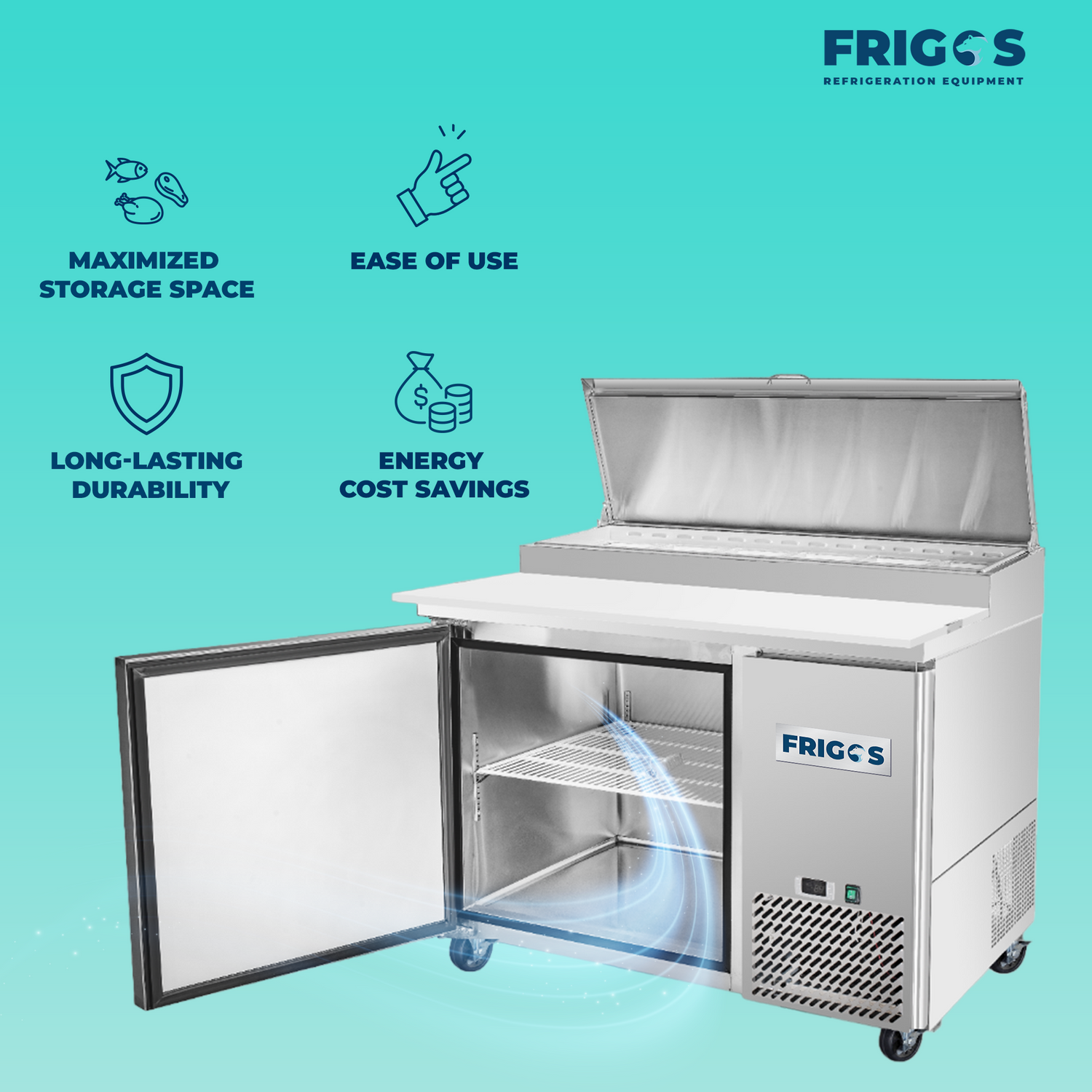 The Frigos brand is known for quality, and this pizza prep table lives up to that reputation. Whether you're in the foodservice industry or running a commercial kitchen, you can trust this unit to keep your products at the right temperature, preserving their quality.