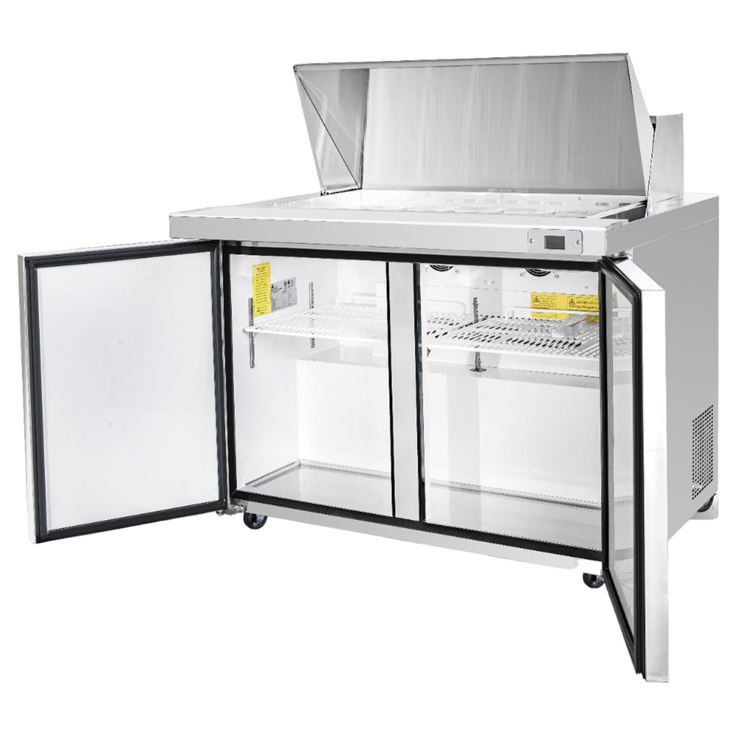 2 Door Stainless Steel Mega Top Refrigerated Sandwich Prep Table 36.25" Frigos Platinum FG-SWPT-36-MTV is backordered and will ship as soon as it is back in stock.