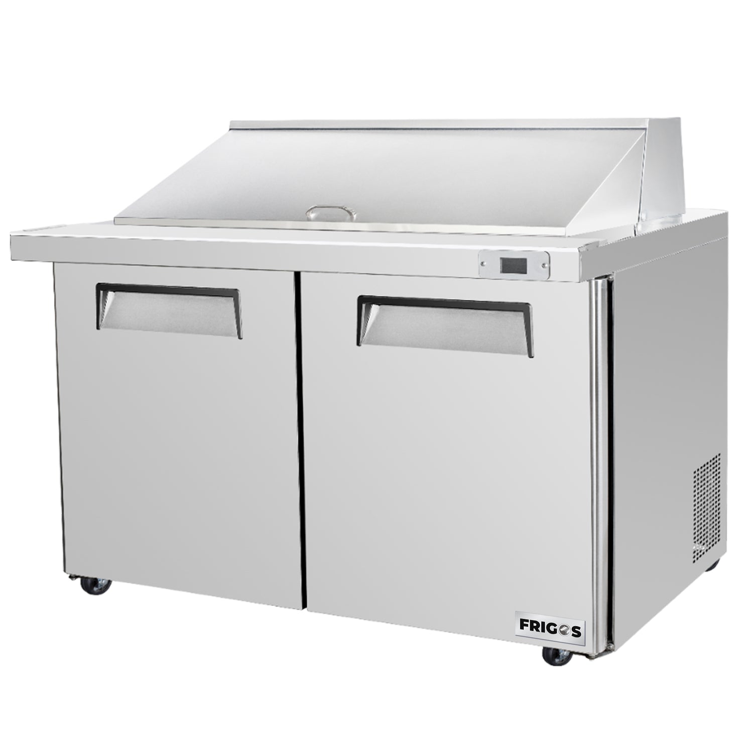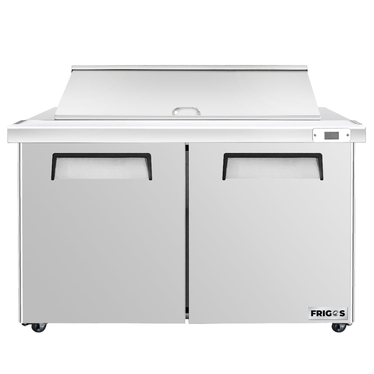 2 Door Stainless Steel Mega Top Refrigerated Sandwich Prep Table 60.2" Frigos Platinum FG-SWPT-60-MTV is backordered and will ship as soon as it is back in stock.