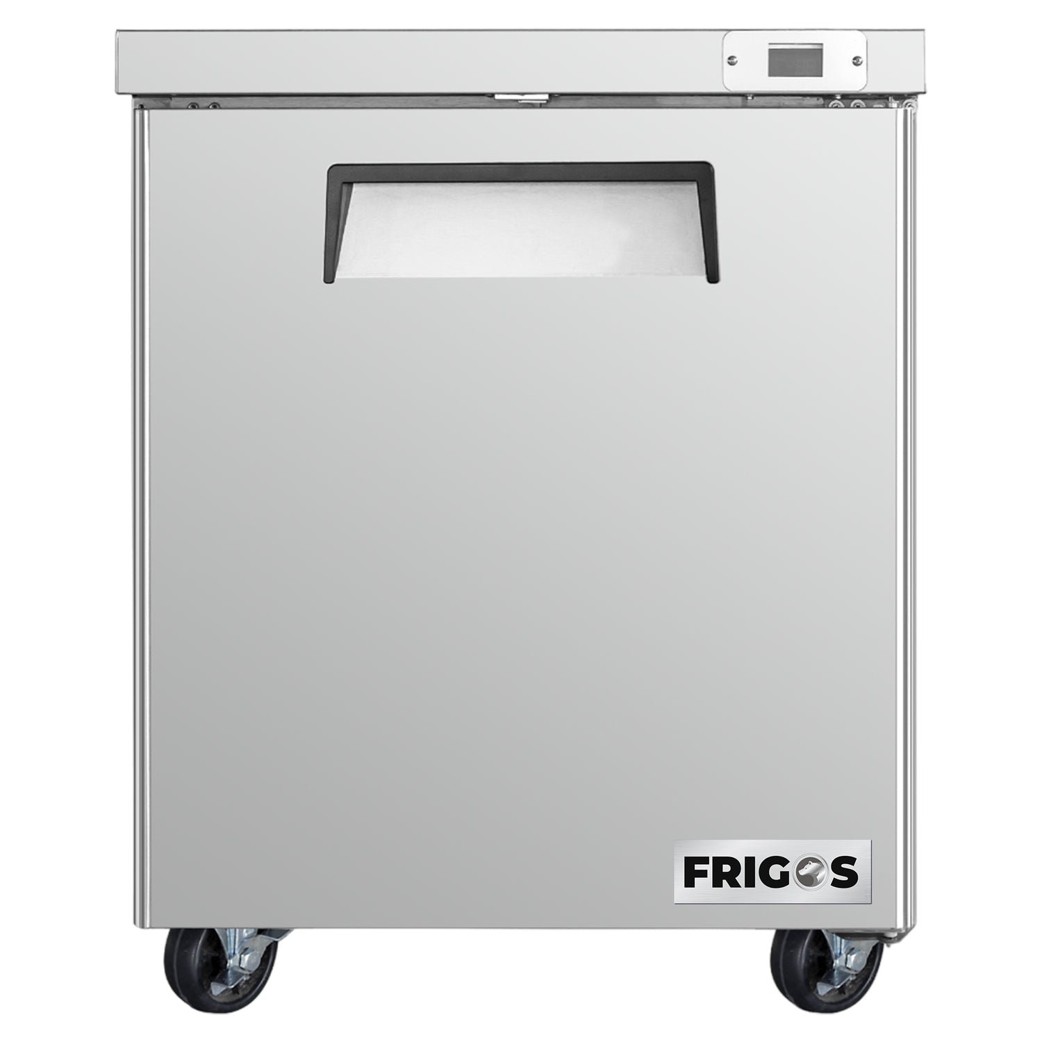 The Frigos Platinum FG-UCFZ-27V is a 27" single-door undercounter freezer designed for compact commercial kitchens. With a 6.1 cu. ft. capacity, it provides convenient cold storage while keeping frozen ingredients easily accessible.