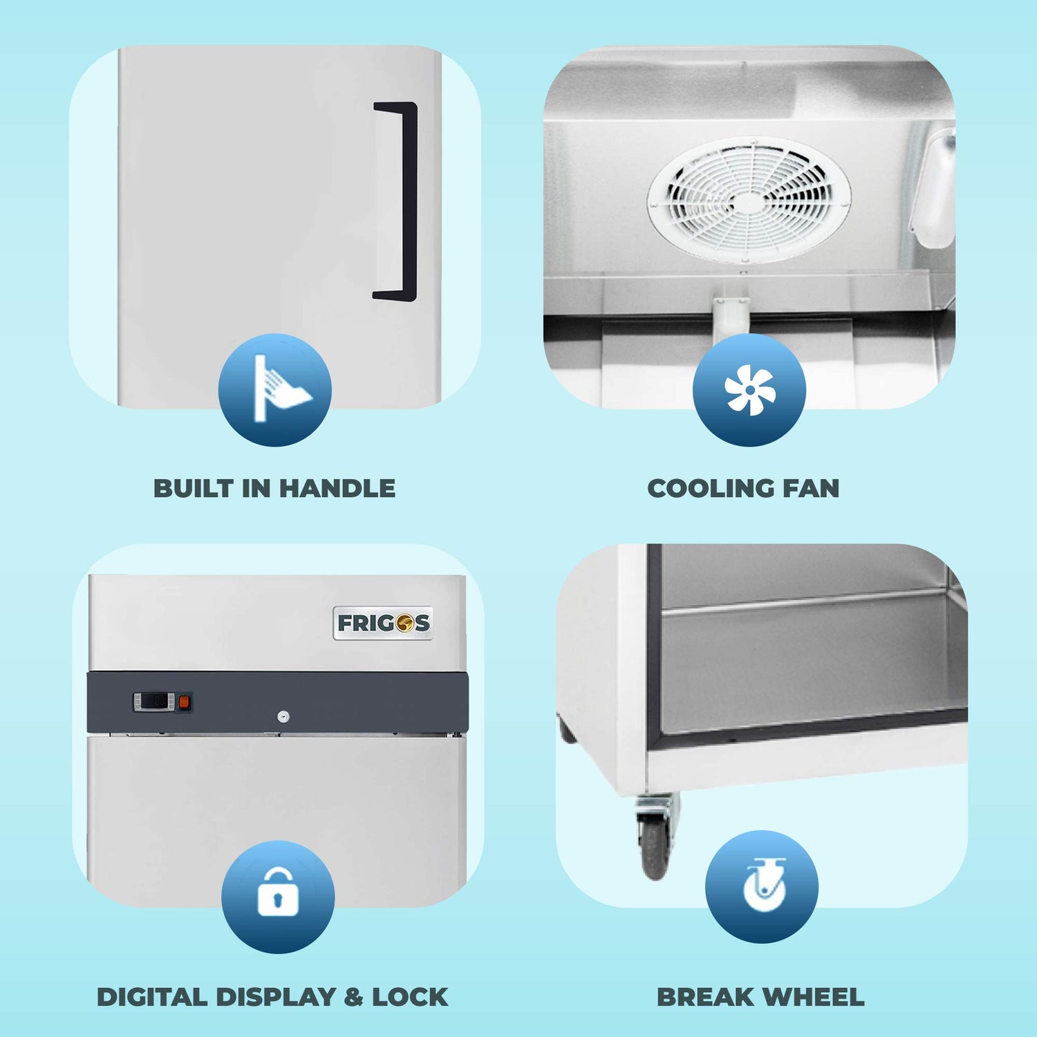 The digital controller gives precise temperature readouts, and the eco-friendly R290 refrigerant offers energy efficiency with a consumption rate of 5.93 KW/24hr. With 4” casters for easy mobility, the Frigos Premium FGP-FZ-1DLH is the perfect addition to any high-demand kitchen.