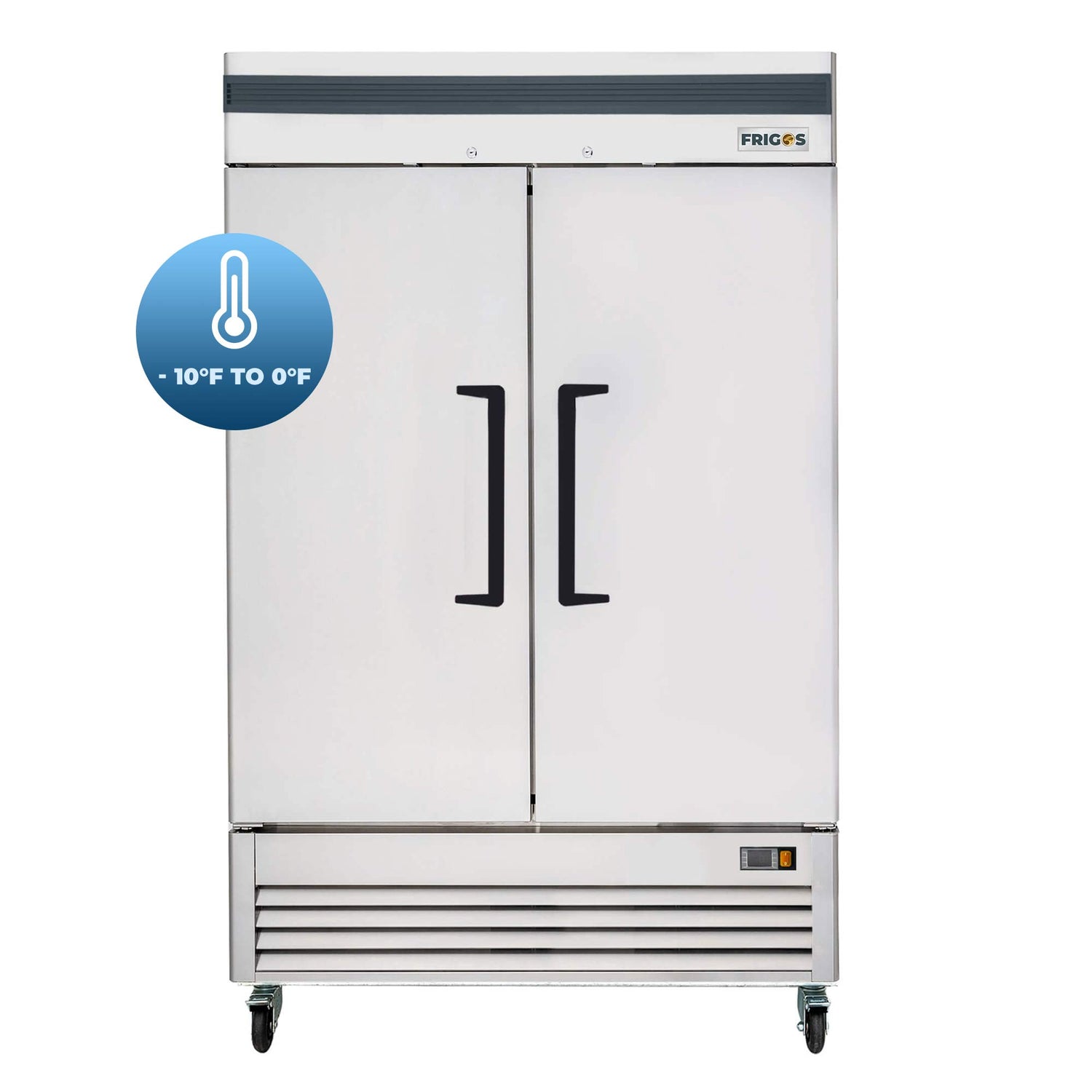 Commercial Reach in Freezer 2 Section Solid Door, 40” Width, 35 Cu Ft Frigos Premium FGP-FZ-2DBC/40 Stainless Steel Interior and Exterior
