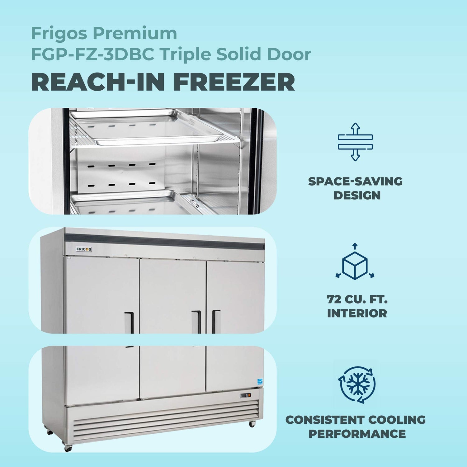 Versatile Temperature Range: With a temperature range from -10ºF to 0ºF, the Frigos Premium FGP-FZ-3DBC creates an ideal environment for preserving various frozen goods, catering to the dynamic needs of commercial reach-in freezers culinary establishments.