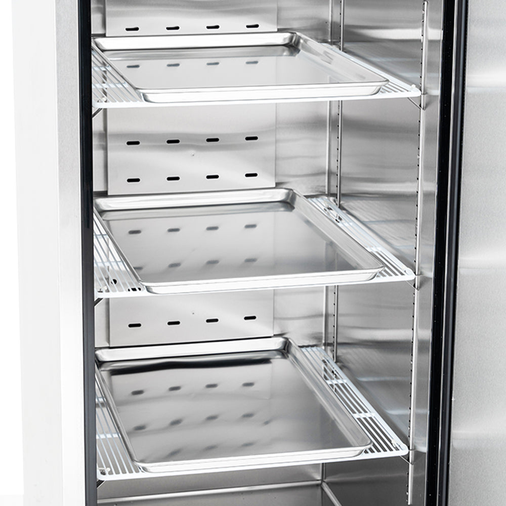 Energy-Efficient Design: Equipped with a reliable 1/7+ HP compressor and utilizing eco-friendly R-290 refrigerant, this refrigerator is designed for energy efficiency, consuming just 1.56 KW per 24 hours, translating into cost savings for your business in commercial reach-in refrigerator.