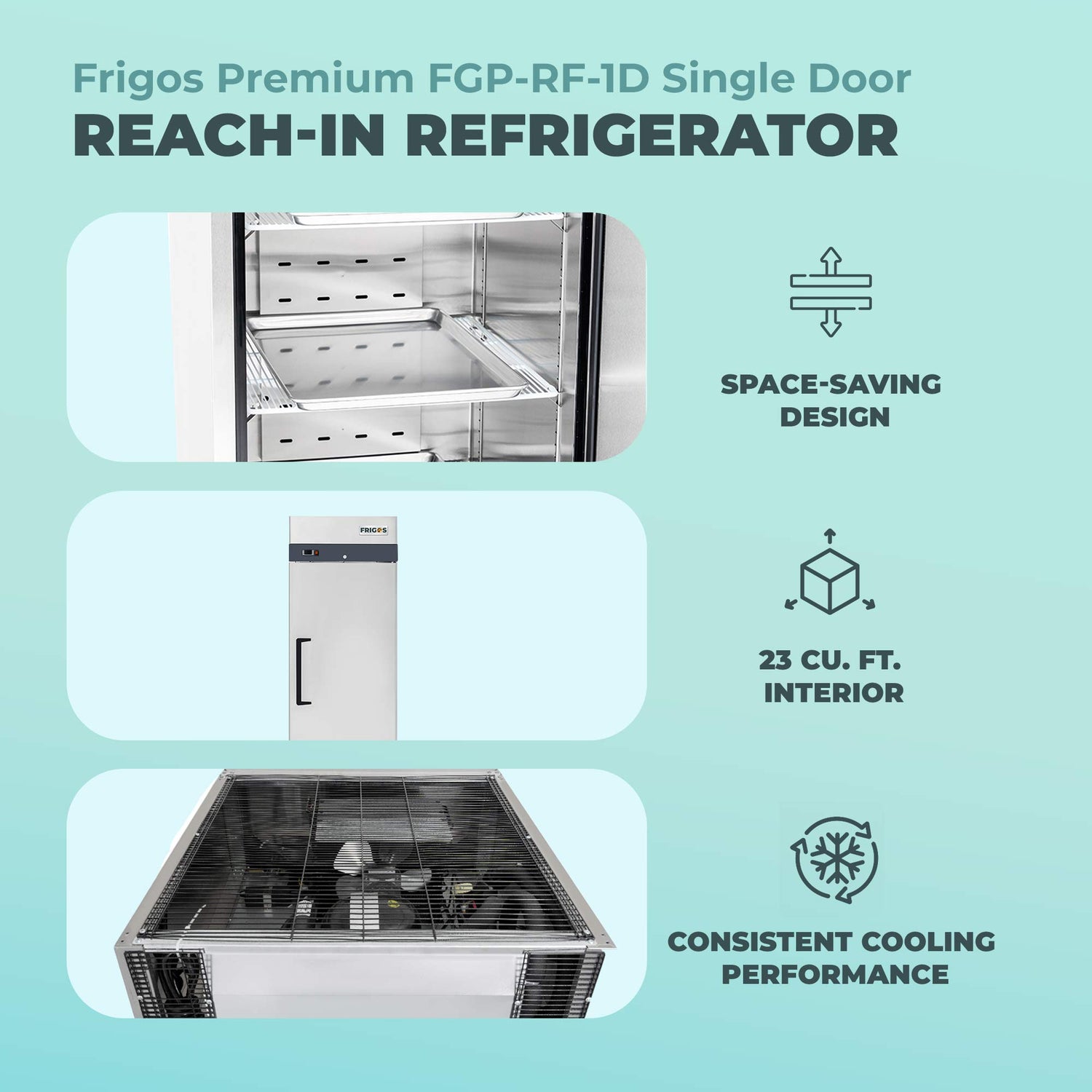 Enhance your kitchen's efficiency with our the Frigos Premium FGP-RF-1D 23 Cu Ft 1-Door Reach-In Refrigerator, meticulously designed to keep your ingredients perfectly chilled and easily accessible.