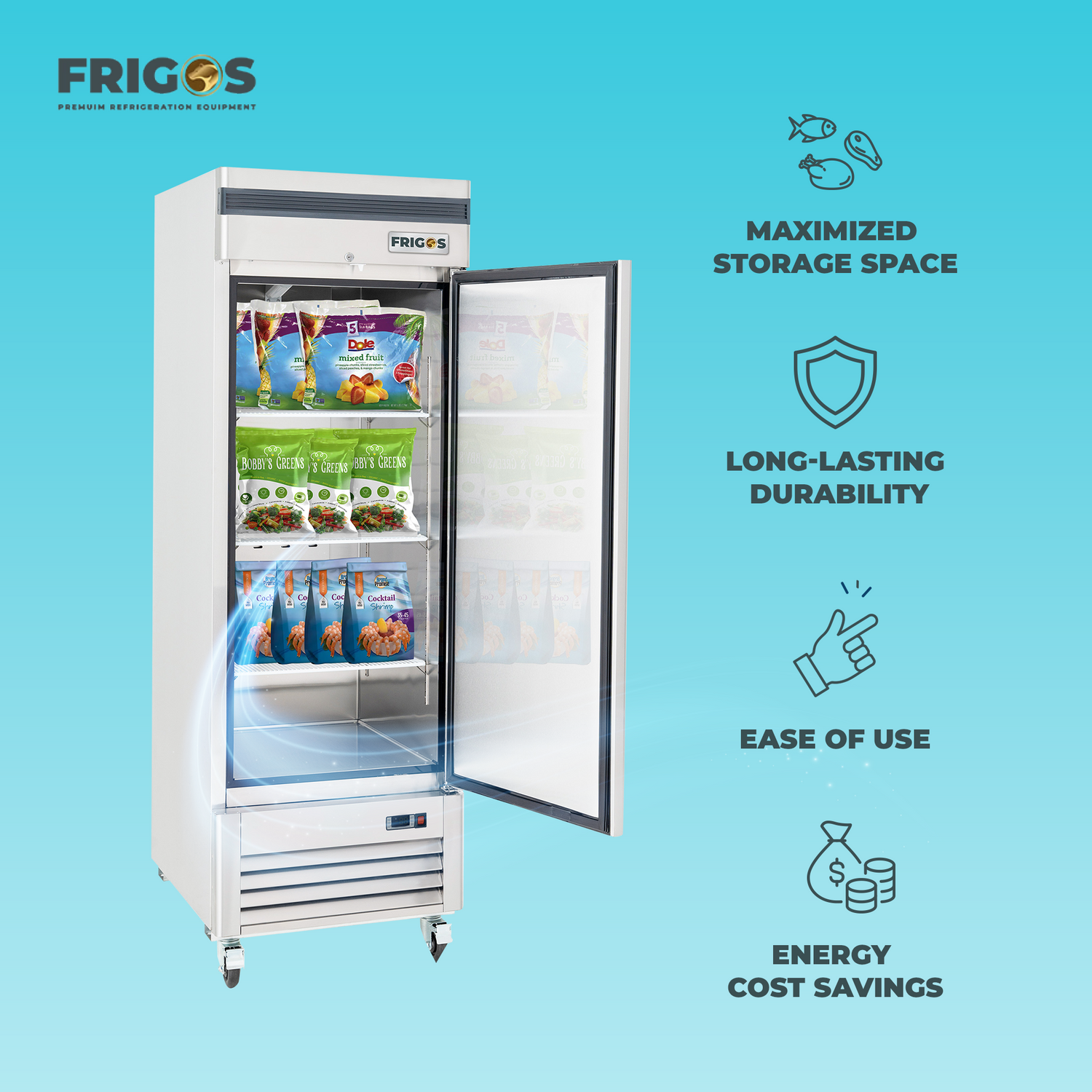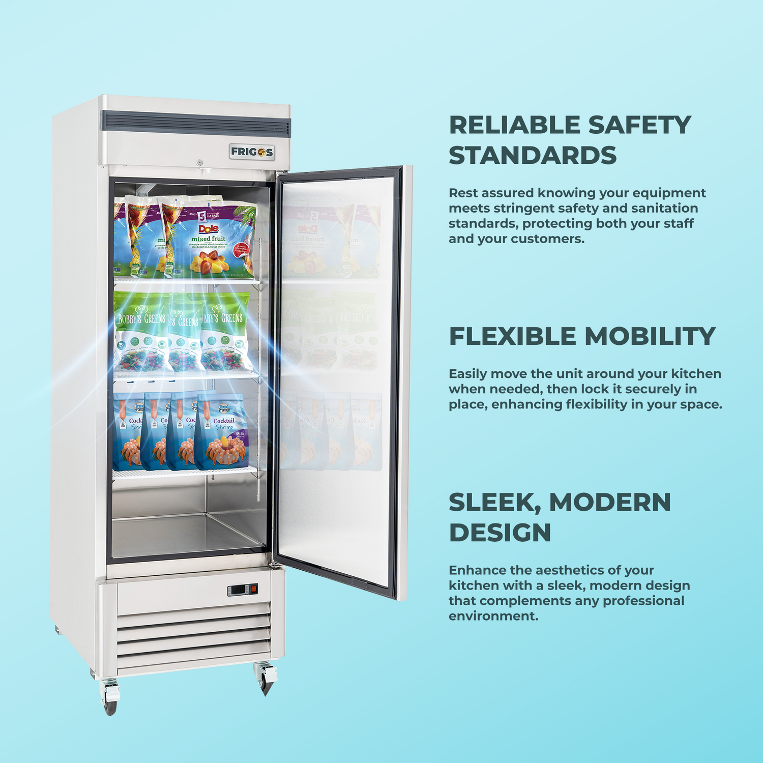Boost your kitchen's efficiency with the Frigos Premium FGP-RF-1DLH 28" One Solid Door Reach-In Refrigerator, designed to provide reliable, high-performance refrigeration for your essential ingredients.