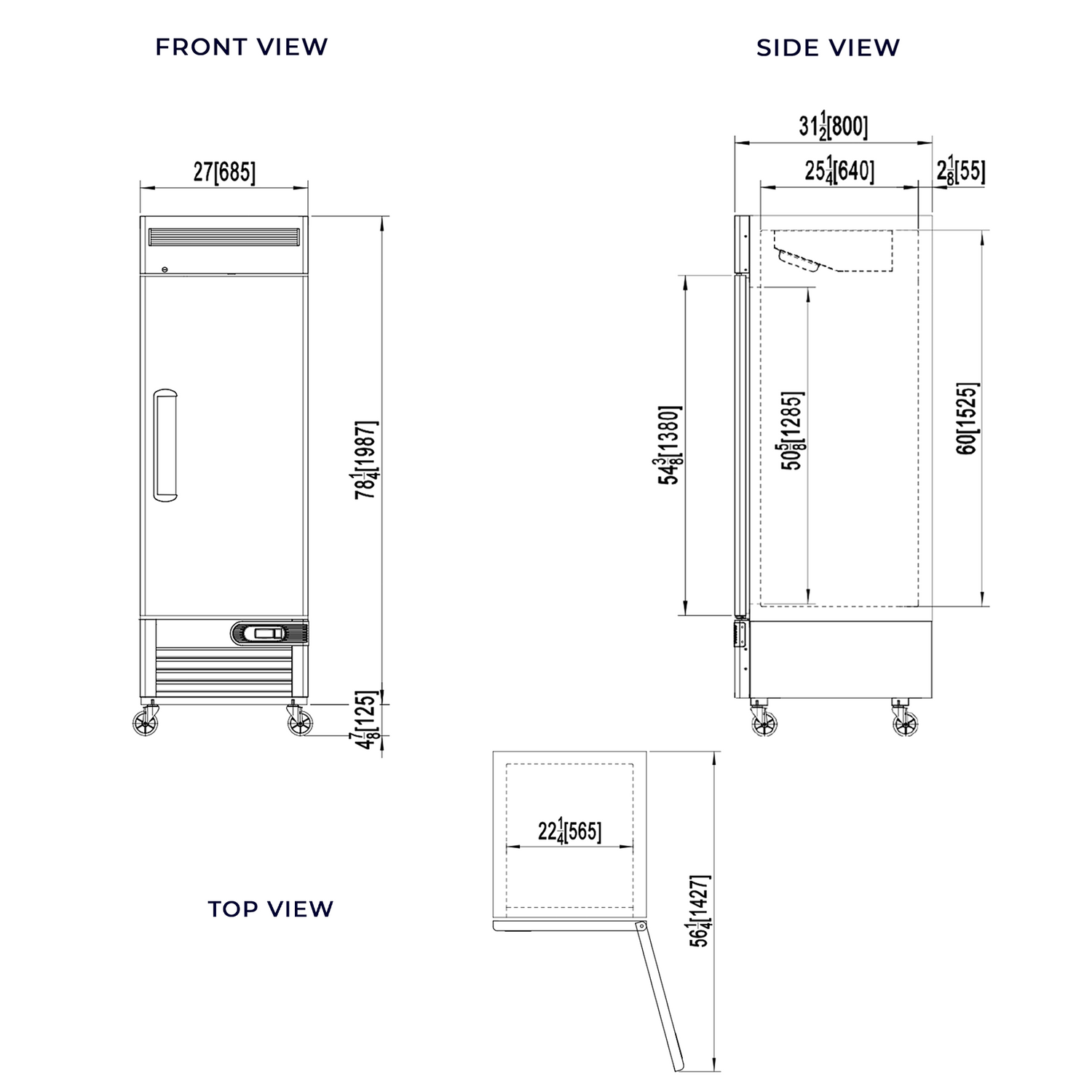 Optimal Storage Space. Featuring a top-mounted compressor, a solid swing door, and three shelves, this refrigerator ensures easy access and optimal storage space for your perishable goods in reach-in refrigerators