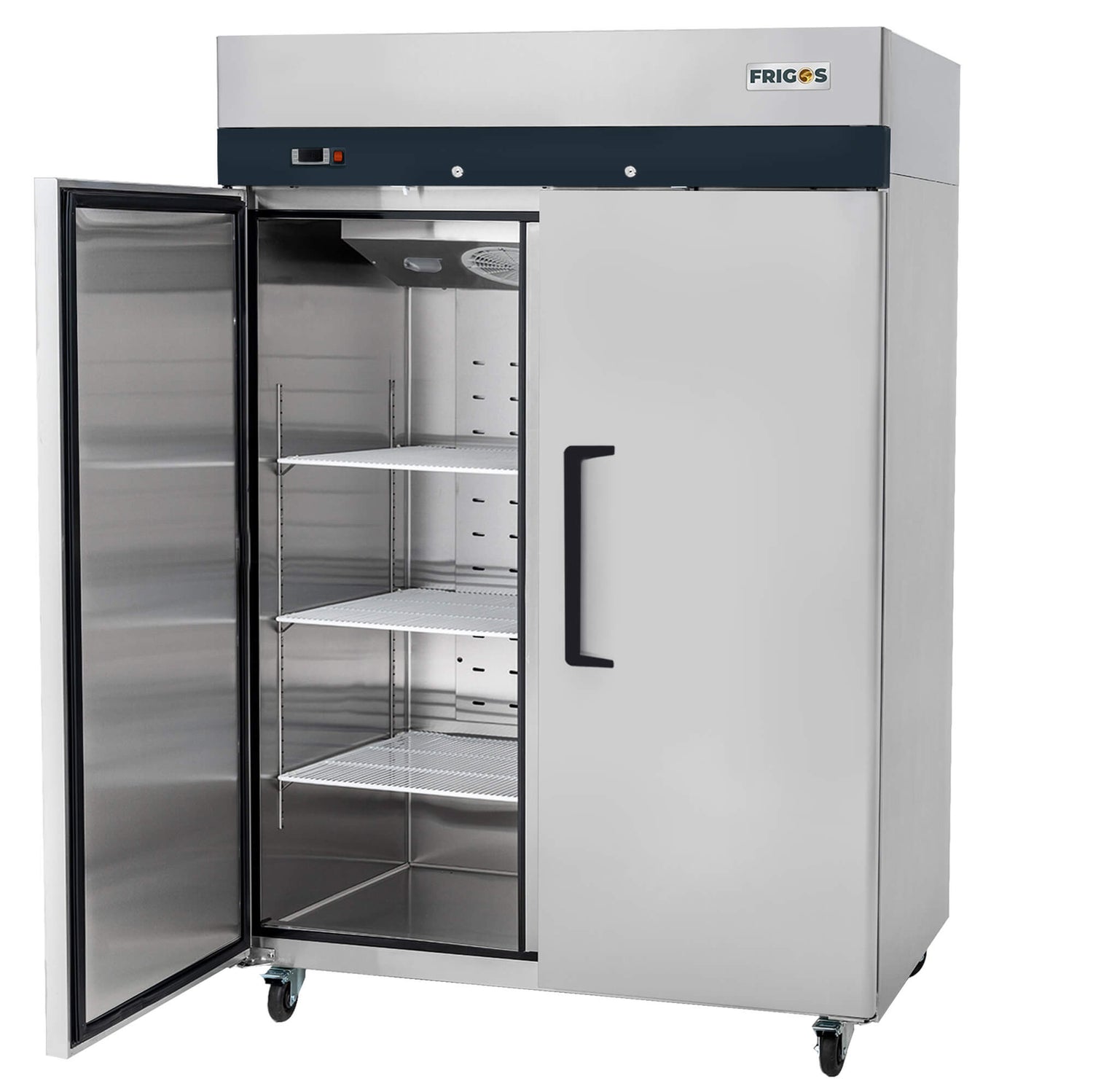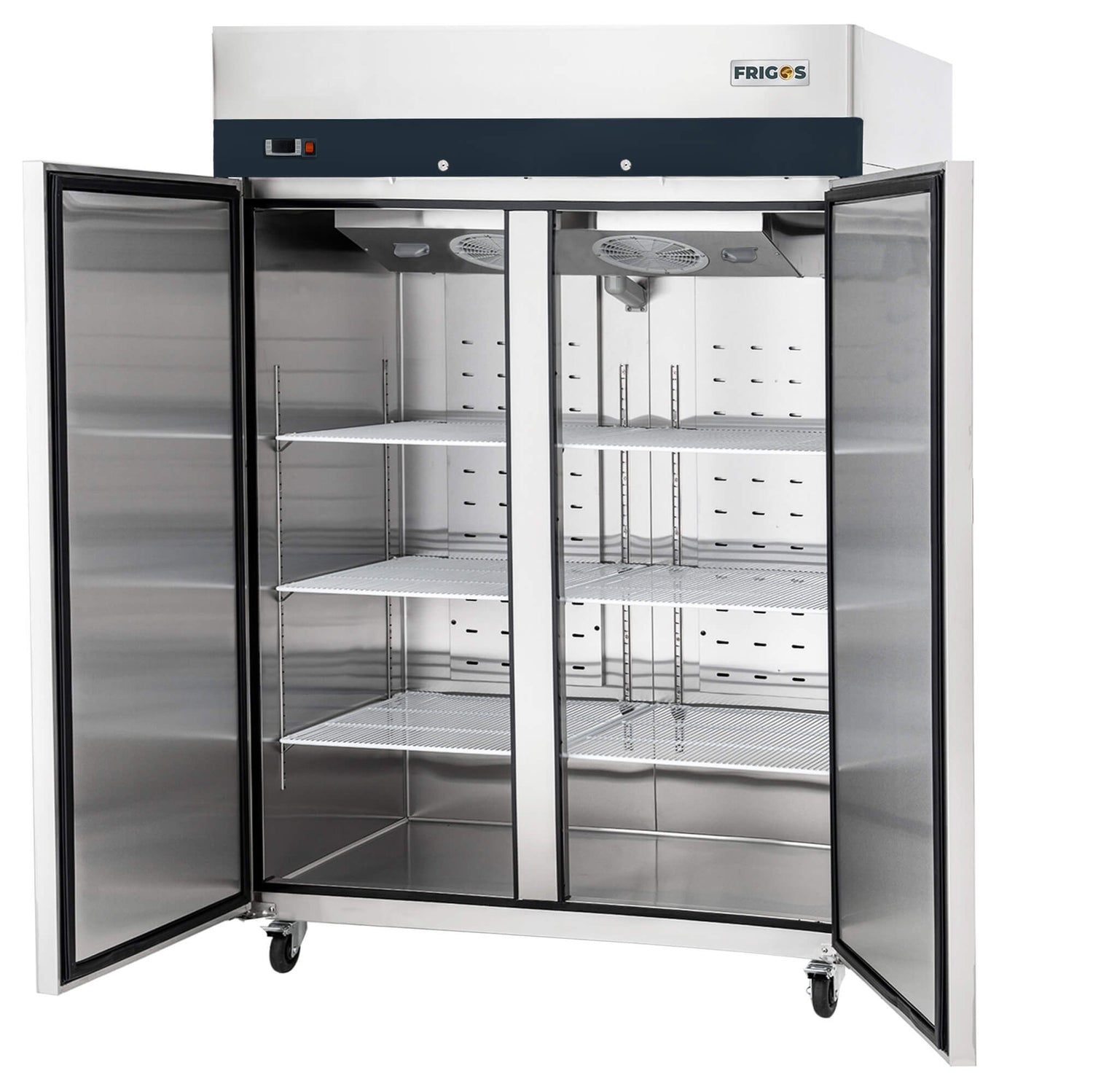 Commercial Reach in Refrigerator 2 Section Solid Door, 49 Cu Ft Frigos Premium FGP-RF-2D Stainless Steel Interior and Exterior