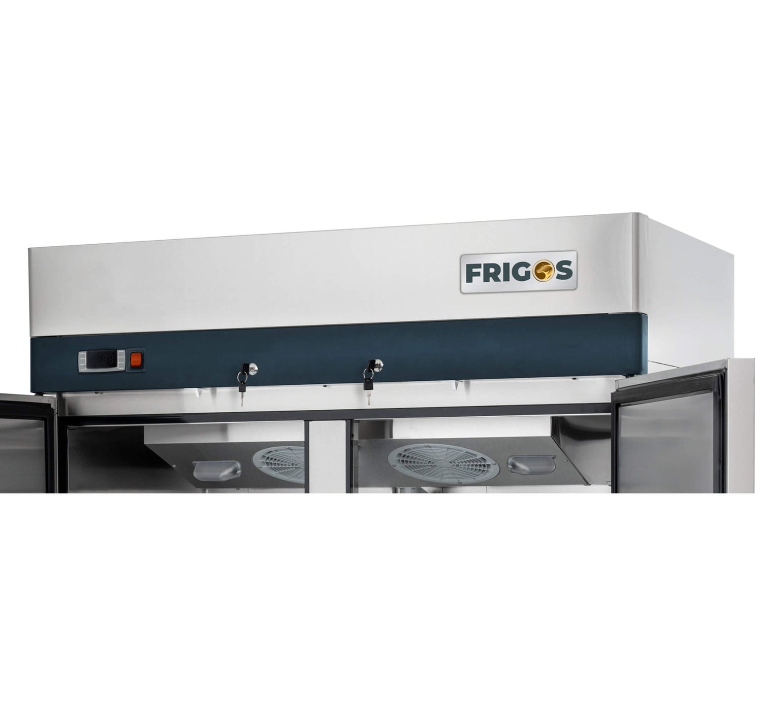 Perfect for busy commercial kitchens, cafés, and restaurants, the Frigos Premium FGP-RF-2D boasts a durable stainless steel exterior and interior, offering both style and longevity. With an impressive 49 cu. ft. of interior space and six sturdy shelves, this refrigerator provides ample room for storing a wide variety of ingredients, ensuring quick and easy access during peak service times. Powered by a 1/5 HP compressor and eco-friendly R290 refrigerant, it delivers consistent cooling within a temperature range of 33°F to 41°F. The unit includes a digital controller for precise temperature management, while 4” casters allow for easy mobility. Built with durable doors featuring recessed handles, the Frigos Premium FGP-RF-2D is engineered for convenience and energy efficiency, consuming just 2.34 KW/24hr for optimal performance.