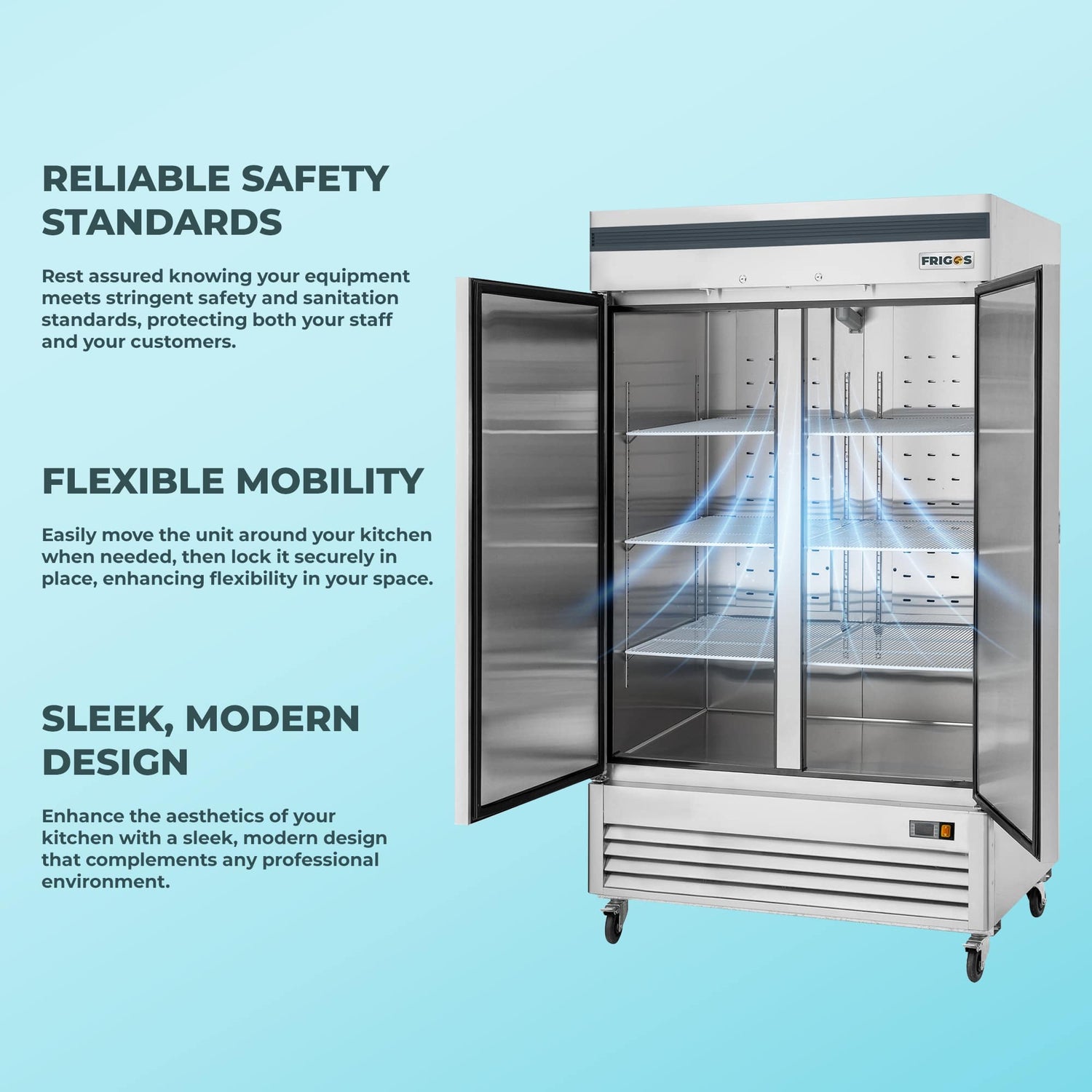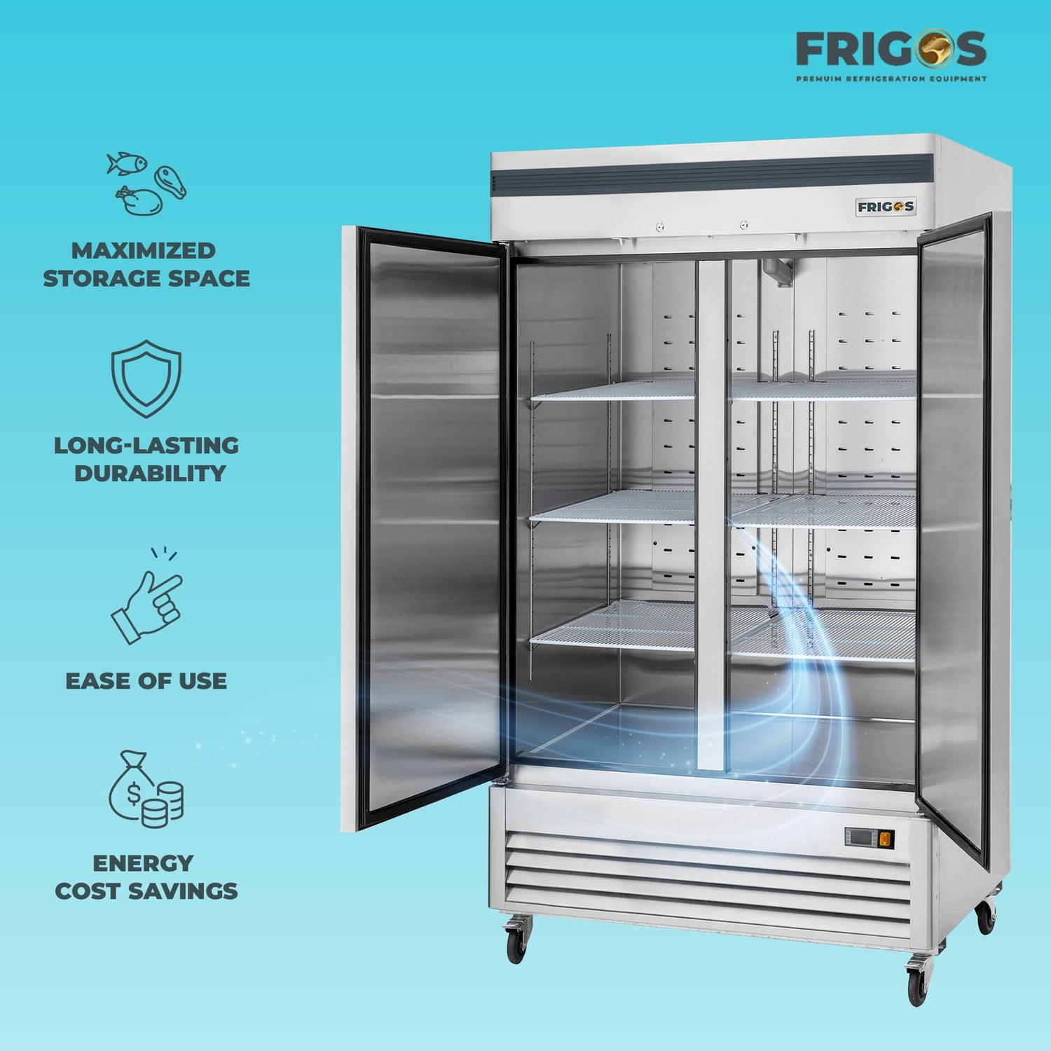 Boost your kitchen's efficiency with the Frigos Premium FGP-RF-2DBC/40 Double Door Commercial Reach-In Refrigerator, designed to meet the high demands of commercial kitchens with its versatile and spacious design.