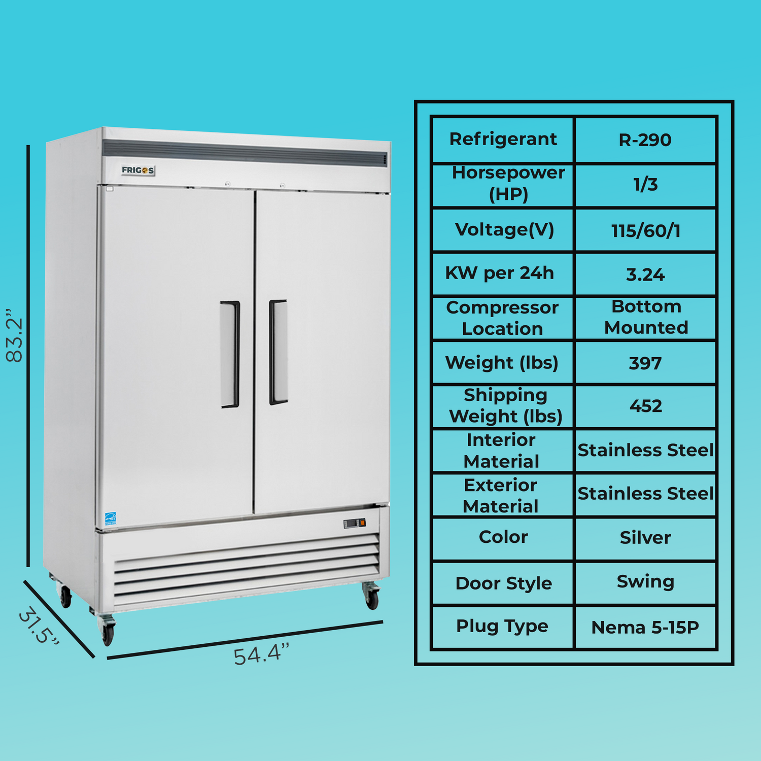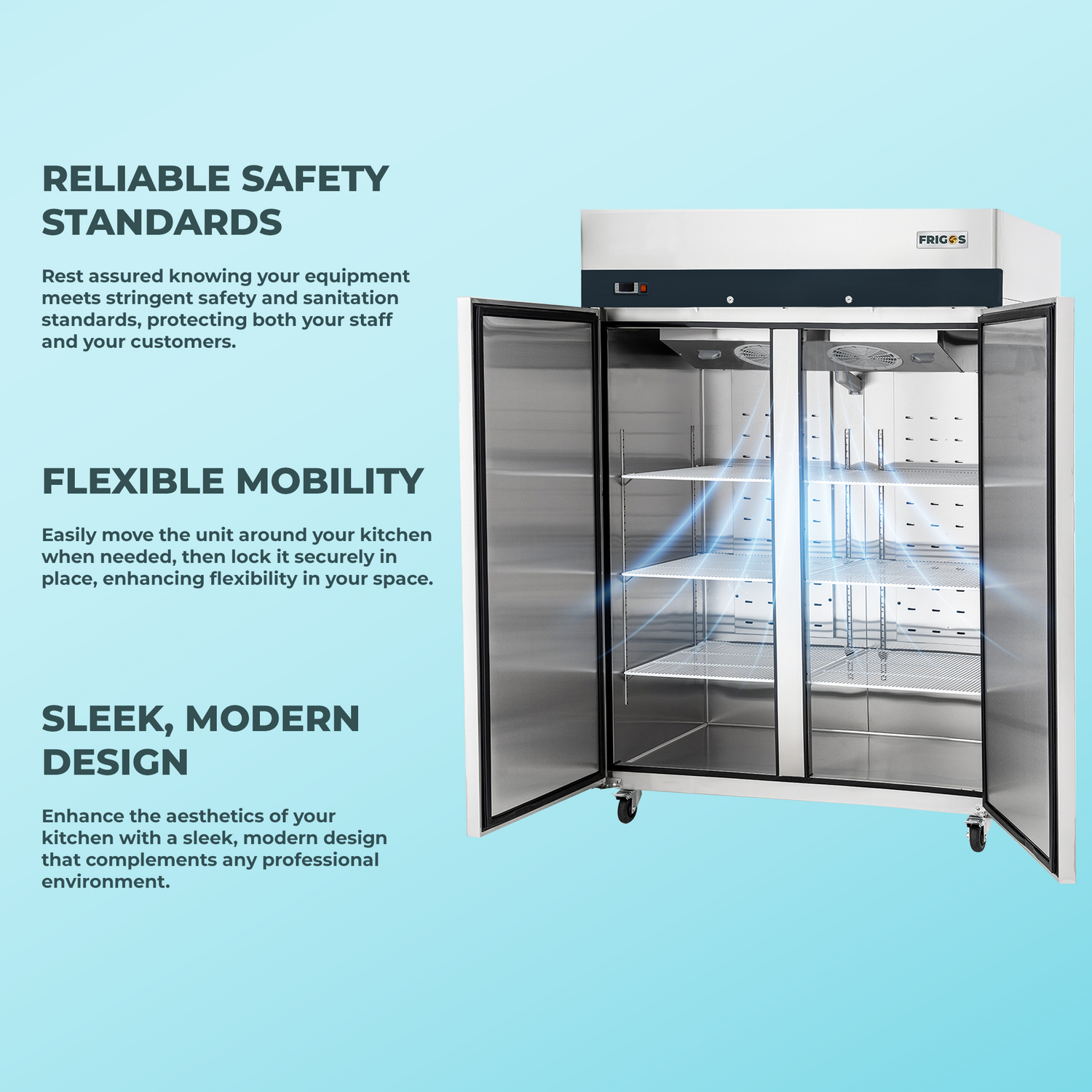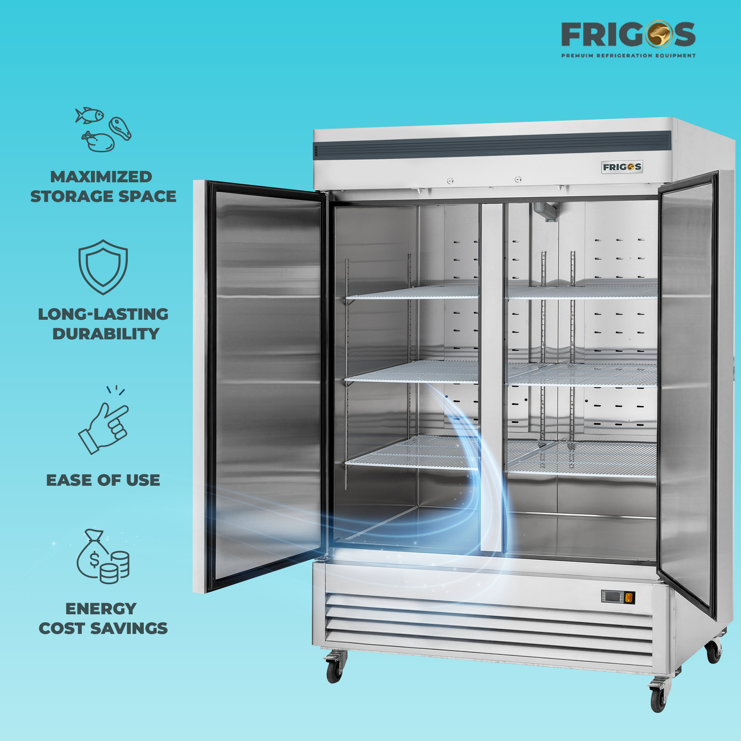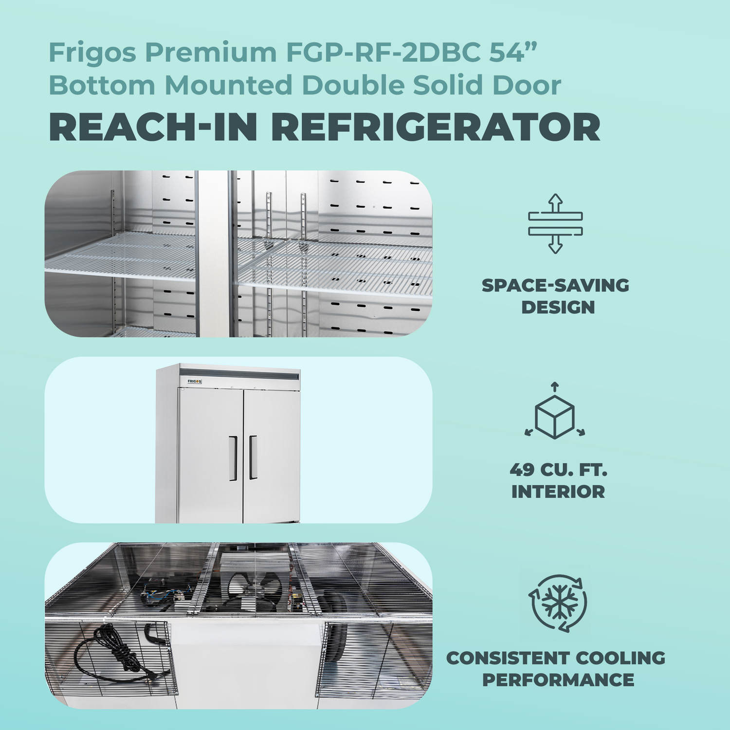 Double Door Commercial Refrigerator 49 Cu Ft – 54” Solid Door Reach-In, Bottom Mount Compressor | Frigos Premium FGP-RF-2DBC