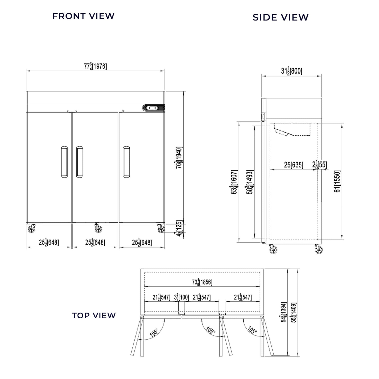 Top-Notch Performance: Engineered to meet the highest standards, this three-door reach-in refrigerator ensures exceptional performance, reliability, and energy efficiency, making it a top choice for demanding environments.
