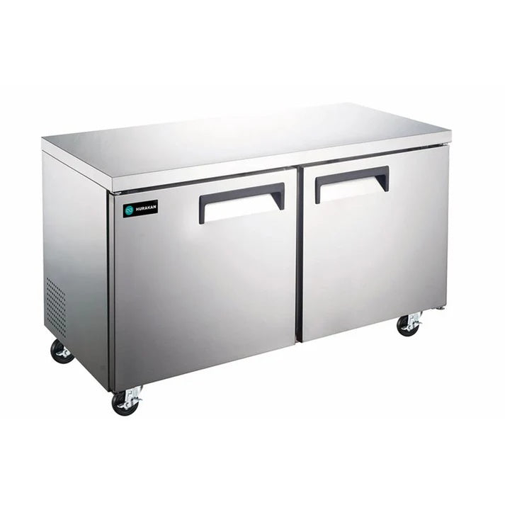 The HURAKAN HKN-UC48R2 undercounter refrigerator is a compact and efficient solution for commercial kitchens, offering 12 cu. ft. of storage while fitting neatly under your counter. Its two-door design keeps beverages, snacks, and other ingredients easily accessible, streamlining food prep and service.