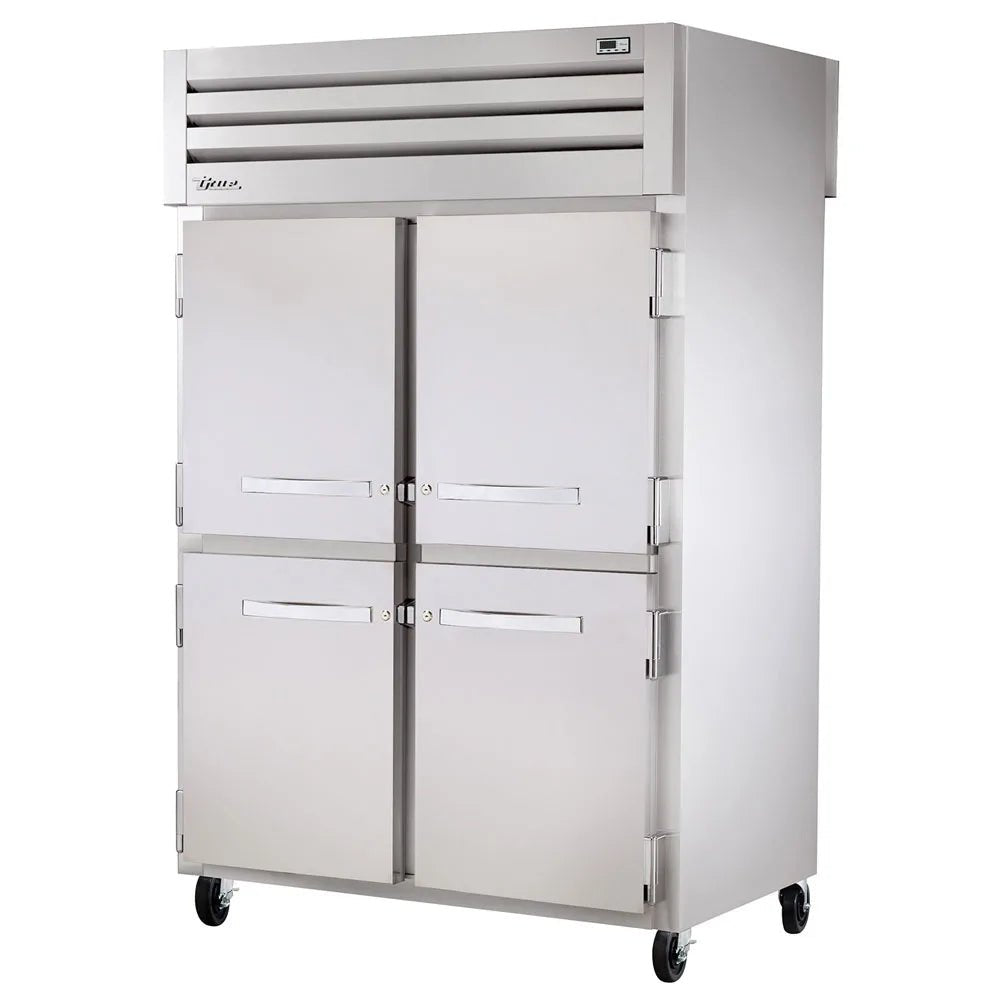 The True STG2DT-2S is a versatile combination unit for commercial kitchens, offering both refrigeration and freezing capabilities. It has a refrigerator on the left and a freezer on the right, with automatic defrost.